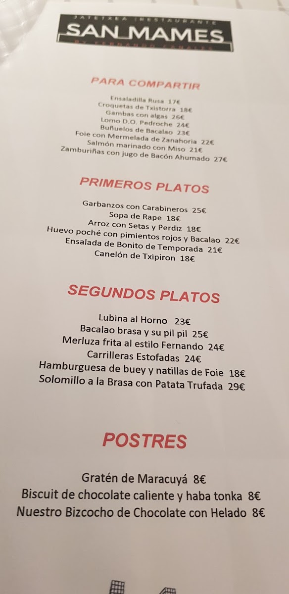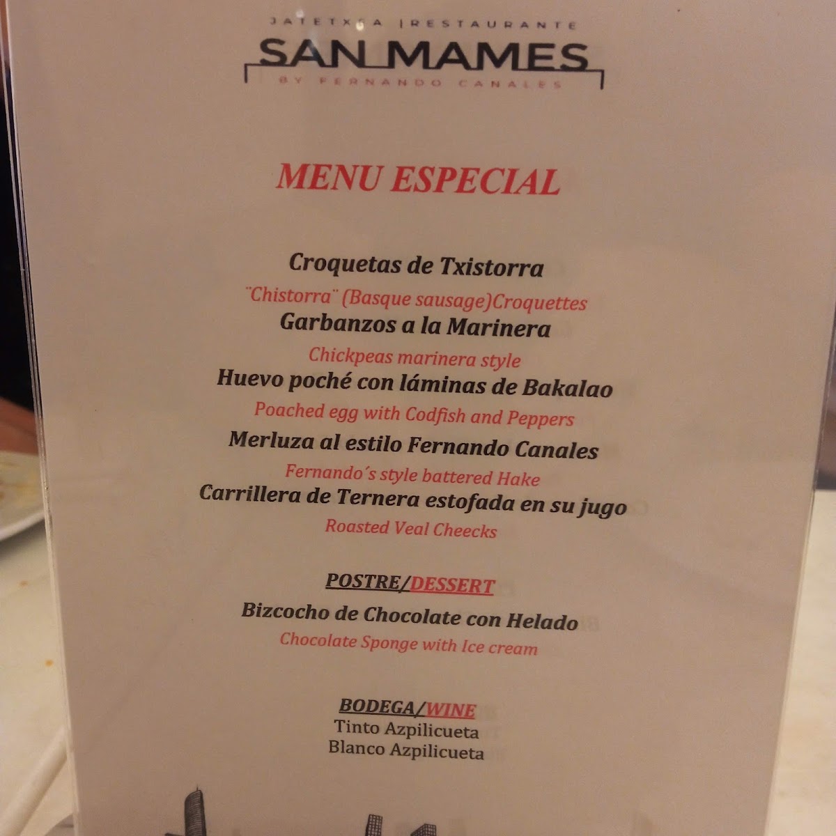 The menu at San Mamés Jatetxea in Bilbao offers a delightful fusion of traditional and contemporary Basque cuisine, showcasing the best of local ingredients and flavors. Among its standout offerings, the Zamburiñas Con Jugo de Bacon Ahumado brings a perfect balance of delicate scallops enhanced with the smoky richness of bacon, making it a must-try starter. For those craving something hearty, the Carrilleras Al Vino Tinto is a tender and flavorful braised beef cheek dish, slow-cooked to perfection in red wine. The rich and creamy Tarta de Queso provides a satisfying end to the meal, offering a sweet contrast to the savory dishes. Other notable dishes include the earthy Arroz Con Boletus, where mushrooms take center stage, and the luxurious Huevo Setas Y Trufa, a dish that combines eggs, wild mushrooms, and truffle for a truly indulgent experience. For a lighter but equally delicious option, the Chickpeas Marinera Style brings the freshness of seafood together with the comforting flavors of chickpeas, while the crispy Croquetas De Txistorra are a perfect appetizer, bursting with the bold taste of chistorra sausage. San Mamés Jatetxea’s menu showcases a masterful blend of ingredients and techniques, ensuring that every dish offers something unique and memorable.